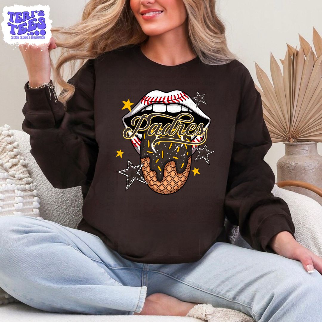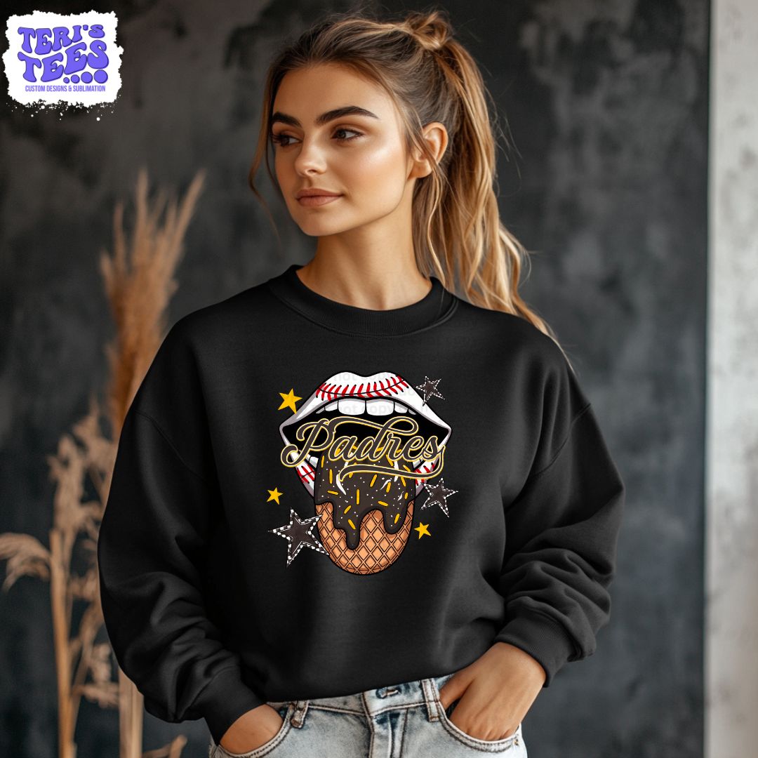 Introducing the Padre Party Tongue Crew, the must-have for all MLB fans! This exclusive PADRES PARTY CREW design combines style and team spirit. Show off your love for the Padres with this comfortable and stylish crew neck. Perfect for game days or any casual outing.